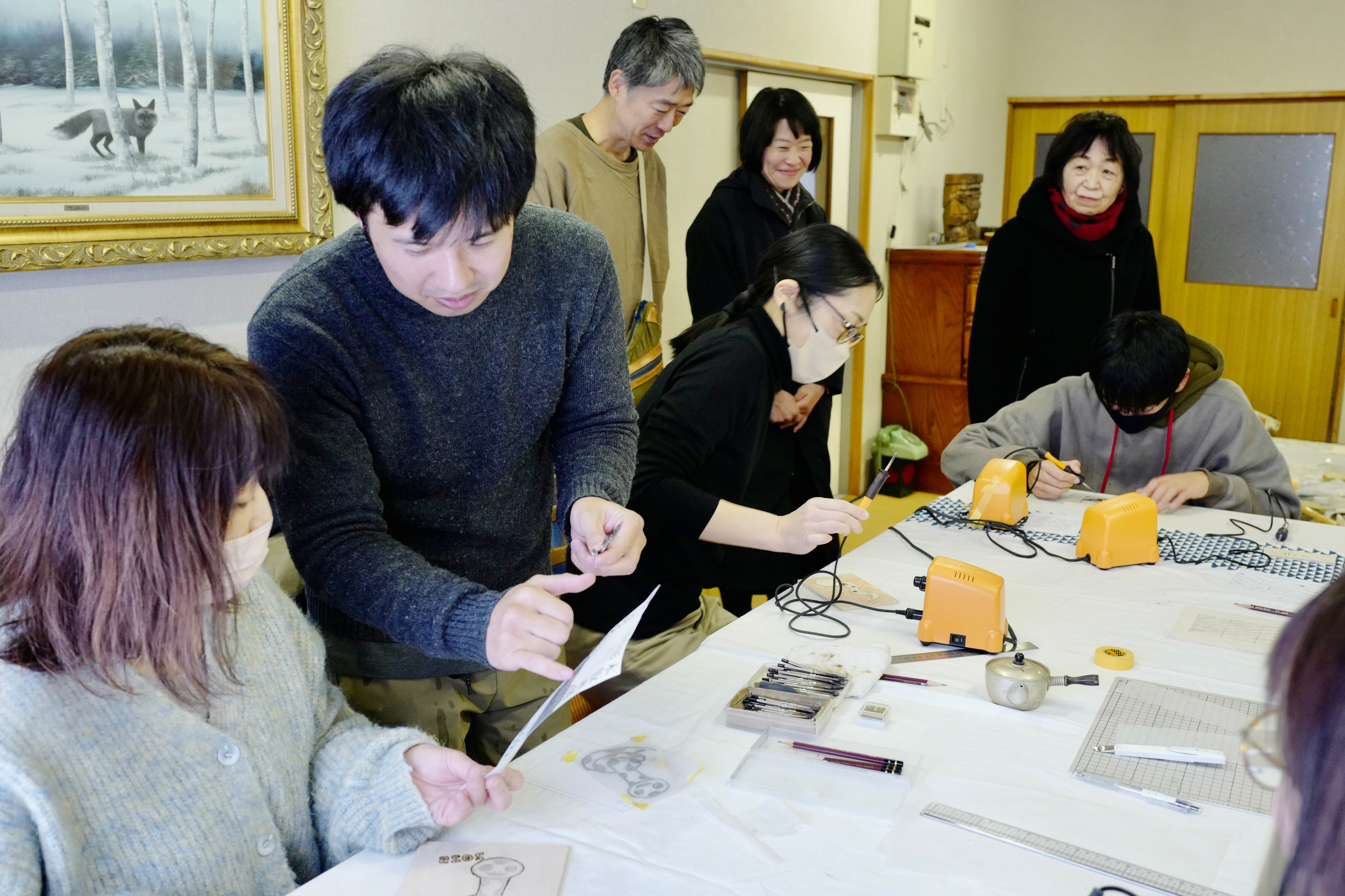 アーティストによるワークショップで地域の新たな繋がりも生まれた(田中彰による版画ワークショップ)